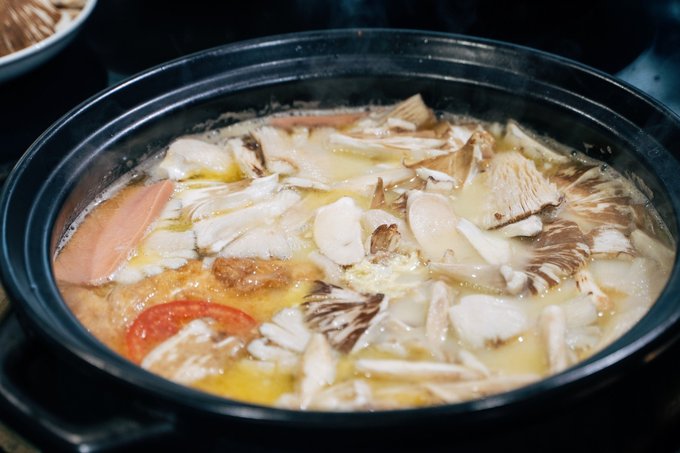 鸡纵菌火锅的汤底熬的雪白,里面会有鸡蛋,排骨,鸡肉等打底。 然后鸡纵下去煮十几分钟就好了,吃菌子前先喝一碗汤,汤汁鲜美,那满足感不摆了。