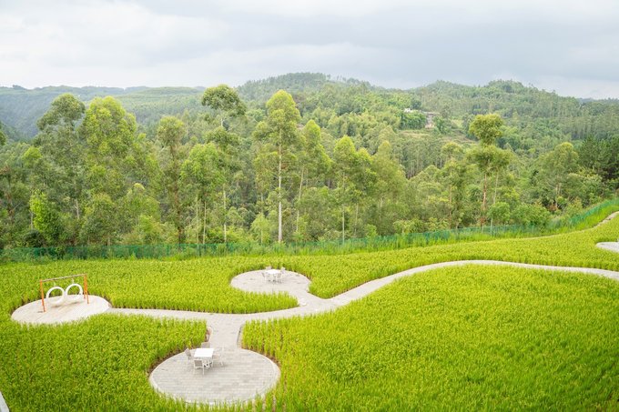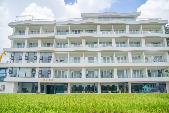 酒店前面是一大片麦田,放眼望去,有种身处清迈稻田民宿的感觉。