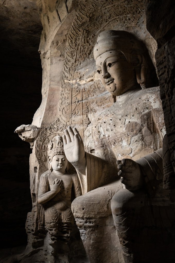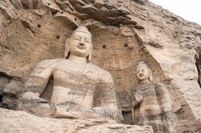 云冈石窟北魏皇家巨作,真的让人感觉到震撼,尤其是当我渺小地站在布满凌美绝伦佛像壁画的石窟之前,站在千年前的参天大佛面前,只能屏住呼吸。