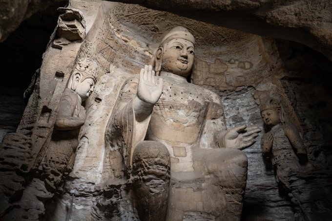 在云冈石窟,什么时间拍,怎么拍,哪里拍好看?我总结了几点。 一、时间:我并不建议一开园,就冲进景区开始拍摄,这个时候游客众多,想要拍摄到空旷一些的石窟,是很不容易的,但是如果下午三四点入园,游客就会少很多了,然后坐上15元的景交车,可以直接送到石窟的入口处。
