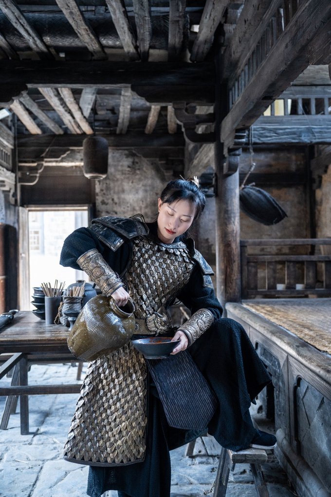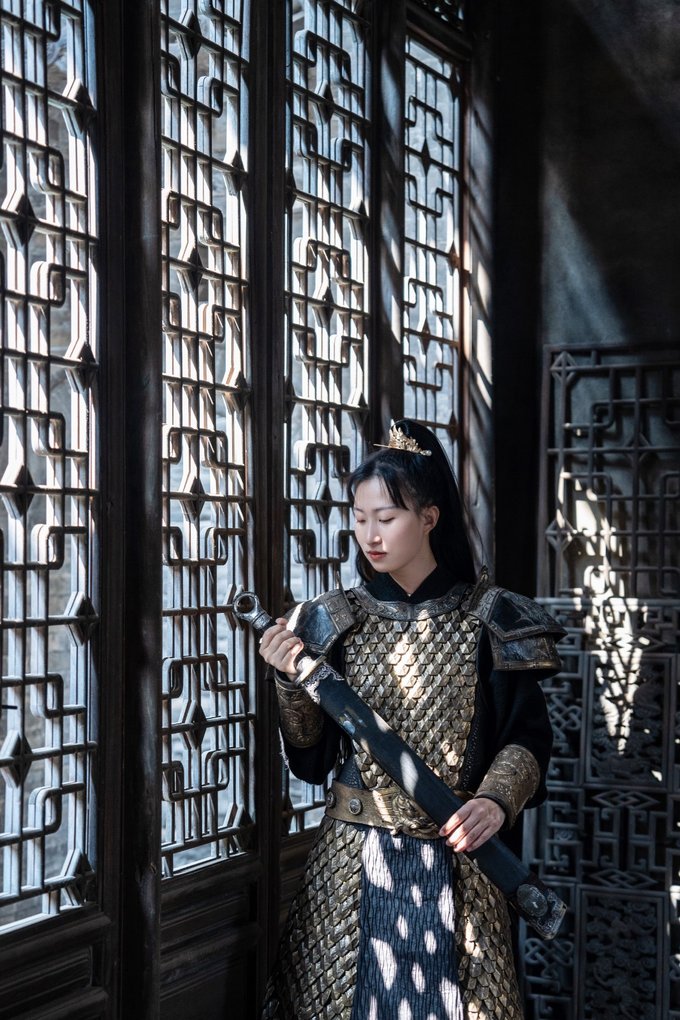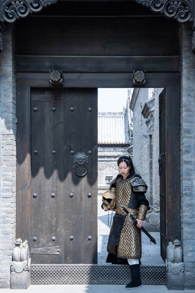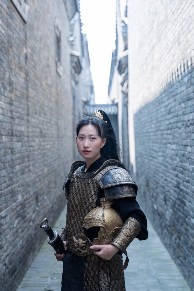 不过,那这儿最主要是为了拍穿越照,这不,立马安排上。 谁说女子不如男,巾帼不让须眉,30元让你实现女将军的梦。满江红影视基地。女孩子穿上甲胄会有不一样的感觉,穿梭在场景里拍摄更加出片。 在院子穿梭,有一种和张大一起办案的即视感,加上电影插曲萦绕耳畔,真的是太有时间感了