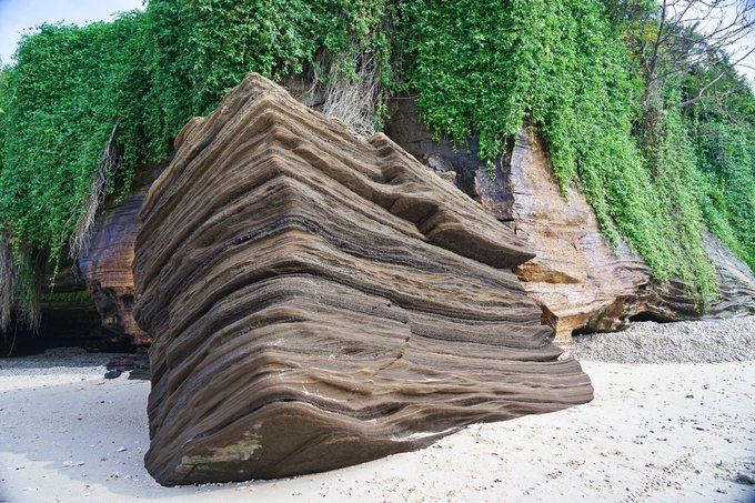 滴水丹屏和鳄鱼山相隔不远,可以一起玩,在海滩边散落着好几块巨大的岩石,岩石远看像一本厚厚的书。