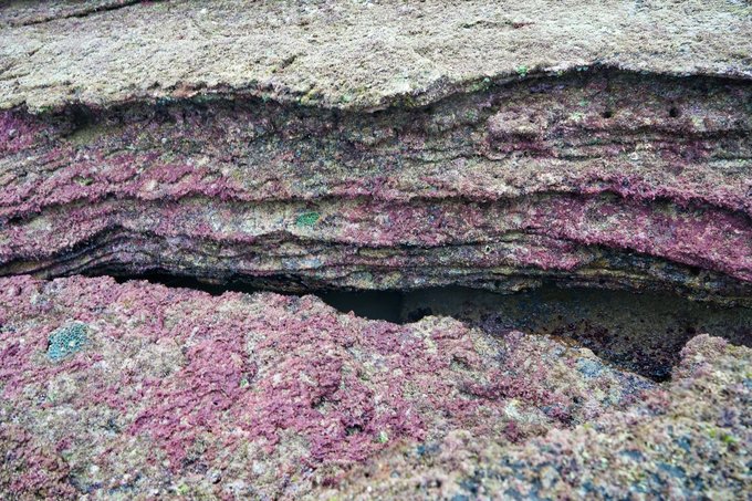 走进礁石,你会发现,他们之所以发光,是因为布满了贝壳和绿色菌类生物,再加上海水的反射,形成了这神奇的景象。