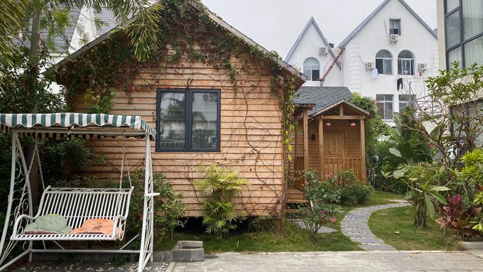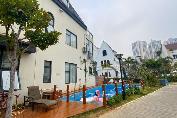 北海海一然度假酒店。距离银滩步行20分钟,是一座别墅改造,有个小巧可爱的院子,院子里鲜花盛开,整体温馨有趣味,房间简单干净,价格很平民。