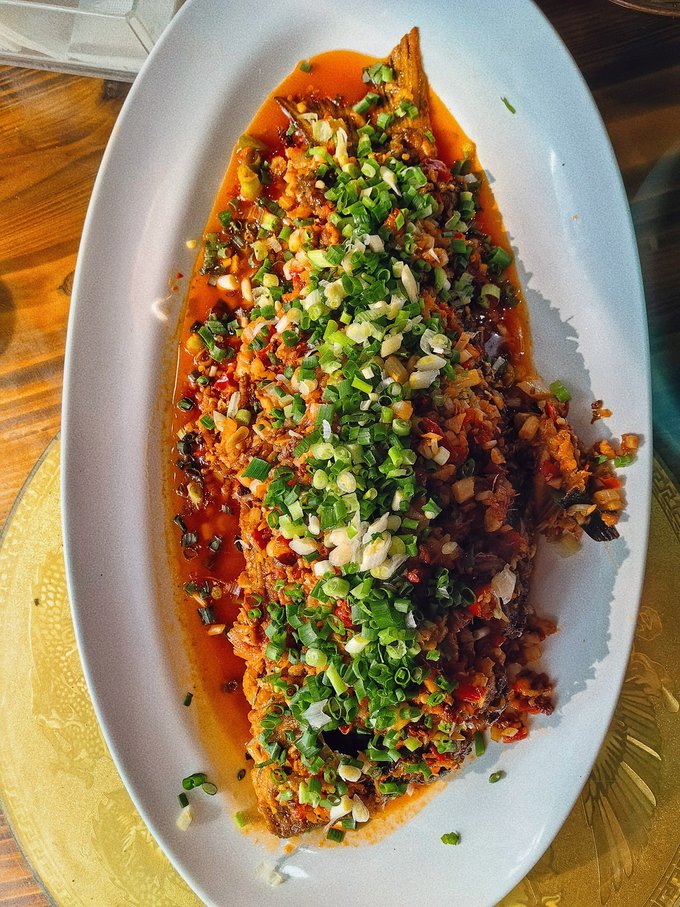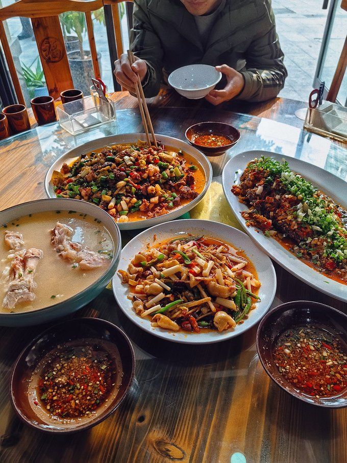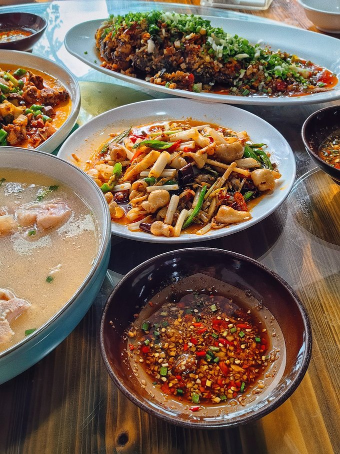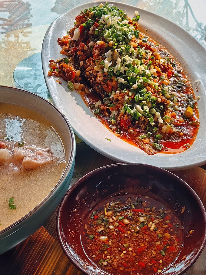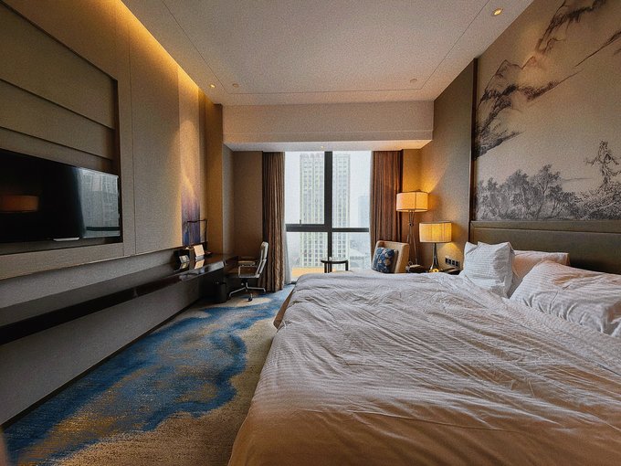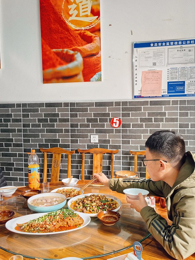 走到公园的最尽头,这里就是张大千的故居了,在一个绿色的湖泊后面。里面展示了张大千当年睡过的床,用过的器具,你可以真实看到张大千家的生活场景,很有年代感。 在张大千纪念馆旁边,还有一座太白楼,如果你想俯瞰整座城市的全貌,一定要登顶太白楼,因为这里可以把整座城市和江景一览无余,非常壮观。 晚饭:大千干烧鱼——极具“舌尖诱惑”,又满足了“口腹之欲” 晚饭时间,俩大老爷们实在是体力不支了,我们随便在一家餐厅点了餐,先满足口腹之欲,再准备进行下一波旅程,兄弟给我特别推荐了他们的 特色菜——大千干烧鱼,天哪,味道真的是绝了。一条鱼一大半都是料,吃鱼的时候加点料一起吃,味道真的巴适得很。 兄弟说,内江是张大千的故乡,因此很多地名,菜名,赛事活动都是以张大千命名,以此纪念张大千。比如还有每年举办的大千龙舟文化节,疫情虽然停办了三年,但是今年举办的时候依然是全民欢呼,热闹得不行,如果有机会真想也参加一盘。 插入图片 住宿:住五星级酒店?是兄弟太飘还是真有必要? 晚上,兄弟说,为了带我看看内江的城市夜景,咱们不能住家里,要去住酒店,住最好的酒店,领略内江繁华都市夜景,我只想说:“咱没必要这么浪费”,但是……在他强烈的建议和要求下,好吧,我们还是去到了万达附近,入住了他们内江的一家五星级酒店“内江富力万达嘉华酒店”。 酒店就在万达广场附近,吃、住、逛街都非常方便。大气恢弘的大厅,宽敞豪华的房间,落地窗的设计,观望夜景视角一级棒,这样看来住一次,还真有必要,城市的夜景真的一览无余。 对了,来住五星级酒店真的要来他们的泳游池游泳,来健身房健身。首先环境来说非常棒,其次,运动一下真的可以消除旅途的疲惫感。 Day2:在田园风光中忘却烦忧,在古街情怀下体验“慢生活” 上午:吃内江牛肉面-打卡范长江文化旅游园区 下午:散步东兴老街-成都返程 第二天一早,拒绝了酒店的早餐,我们特意找了一家当地面馆,就为了尝一口传说中的“内江牛肉面”,不瞒你说,味道真的超好吃,软弹入味,真的太有口感了。 早餐:内江牛肉面——一定要就着“牛肉哨子”吃 据说这是内江的特色面,来内江的人都必点,就着牛肉哨子吃,大颗牛肉意犹未尽,加点青菜和鸡蛋,满满一大碗,既美味又饱腹,关键是份量真的太足了,仿佛内江人的面都不要钱似的,女孩子建议点一两就够了。