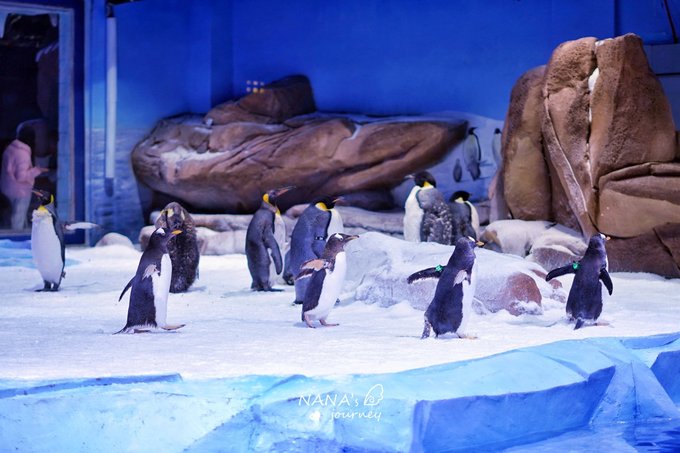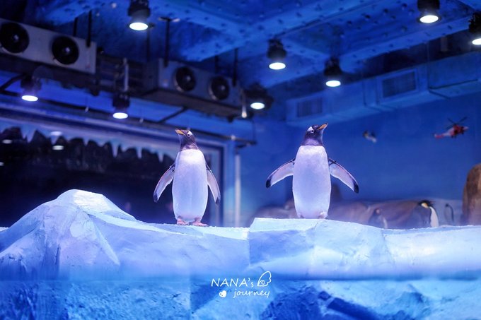 来看看极地动物吧,在冰雪世界中,奥罗拉城堡的布景是童话中的冰雪世界,有各种舞台可以看海洋小动物的表演,要看企鹅的就快快上楼吧~