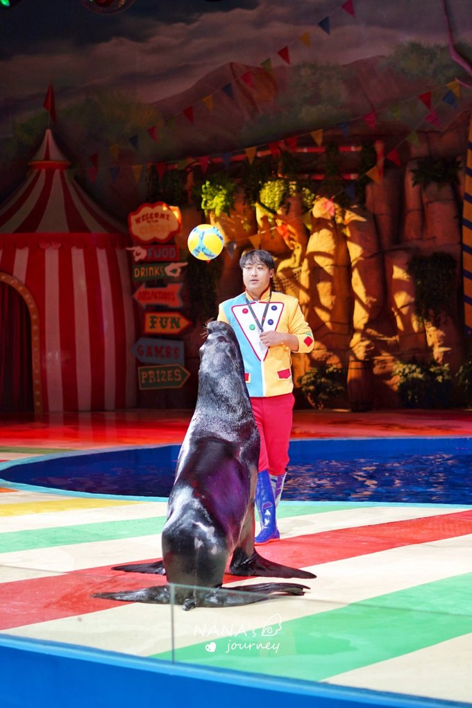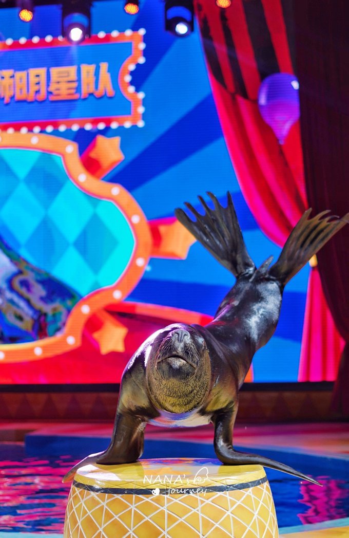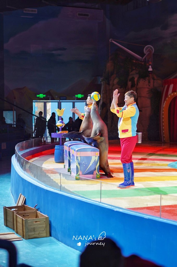 海狮表演可不单单只是海狮哦,是一共3个组的比拼,人类组,小海狮和南美海狮,他们各自展示着自己精湛的才艺,让我们连连称赞!小海狮最有意思,不仅会拍手,还会傲娇,还会索吻,太有意思了,最后有和游客的舞台互动~