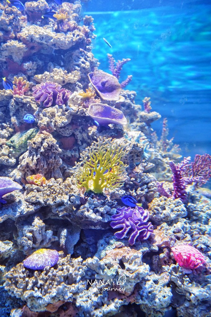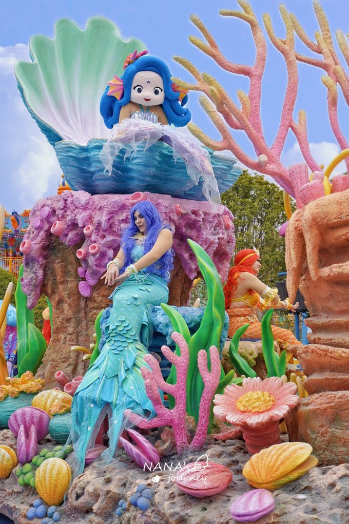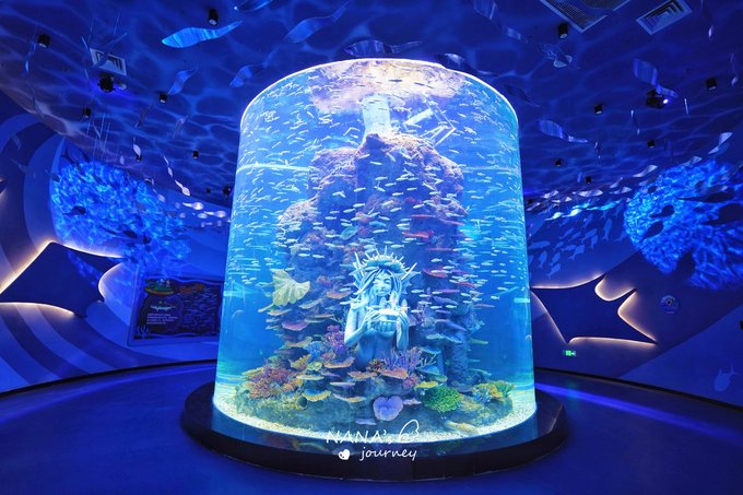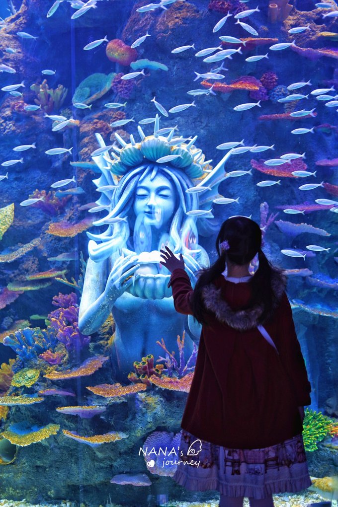 看过宣传片的都知道人鱼公主的水族馆真的美到让人惊讶,石头雕像的人鱼公主被彩色的珊瑚所包裹,还有成群的小鱼围绕着她旋转,充满了海底的幻境色彩,这里真的太好拍了,是我很喜欢的打卡点之一~