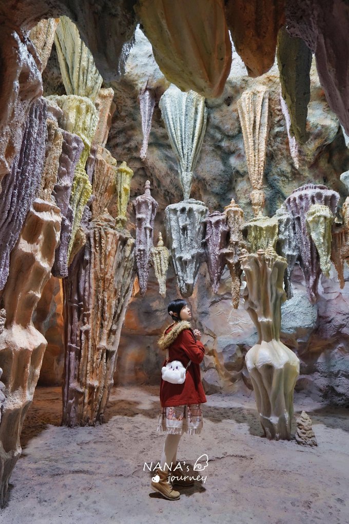 最后还有恐龙化石的山洞,这色泽和钟乳石的石笋造型,也太绝了吧!