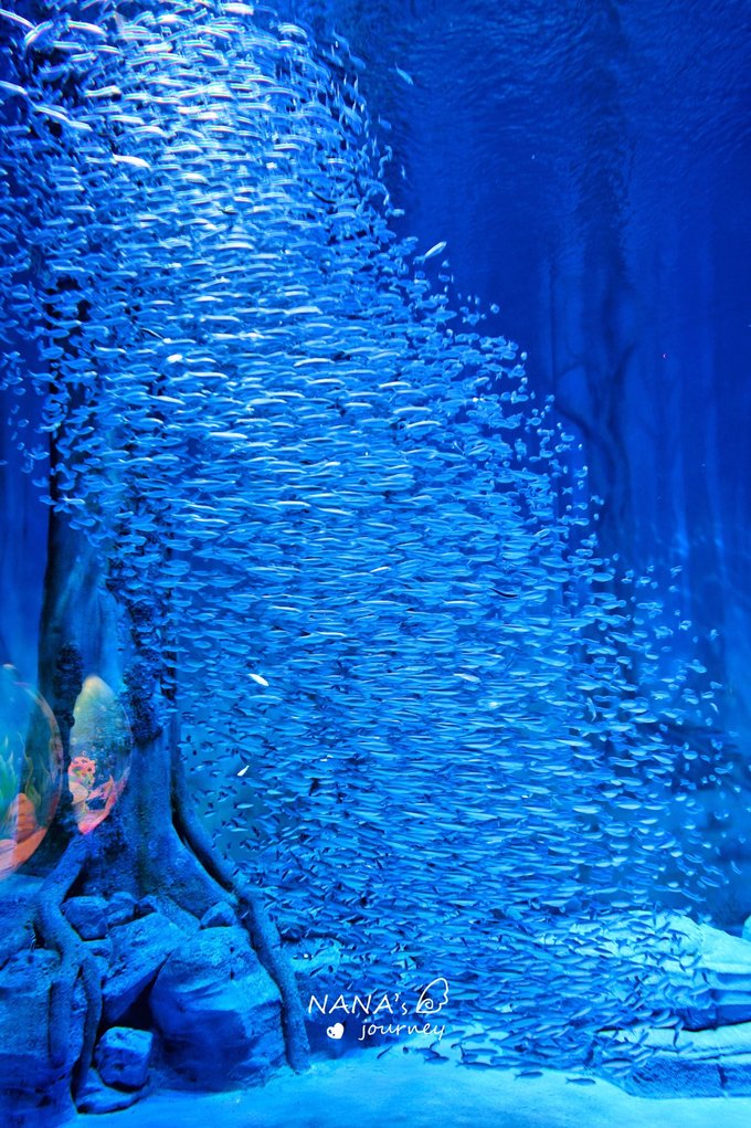 里面就是大型的水族馆啦,每一个面都有非常多不同的鱼种,随手一拍都是大片,来水族馆最喜欢的就是与鱼儿们同在的场面啦~