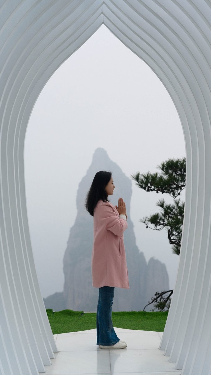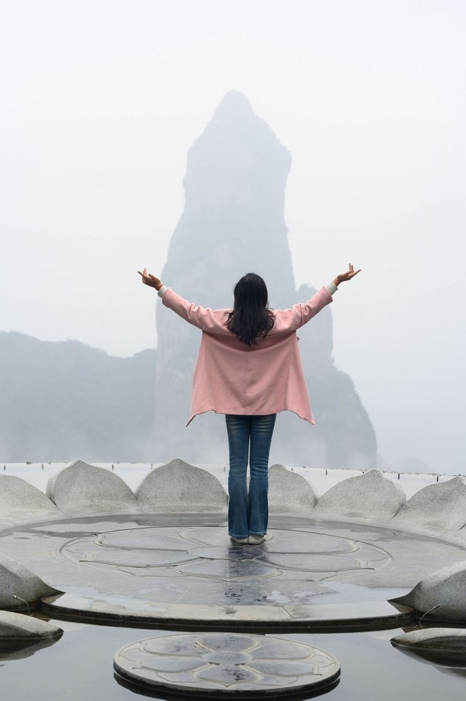 景区内有多个网红打卡点,不要错过。佛影莲韵人气很旺,大家都排队等着拍照打卡。我觉得在这里拍照穿浅色裙子更出片,犹如仙女来到了凡间。看了之前朋友拍的夕阳下的佛影莲韵,被金色的光芒包围着,太美了。