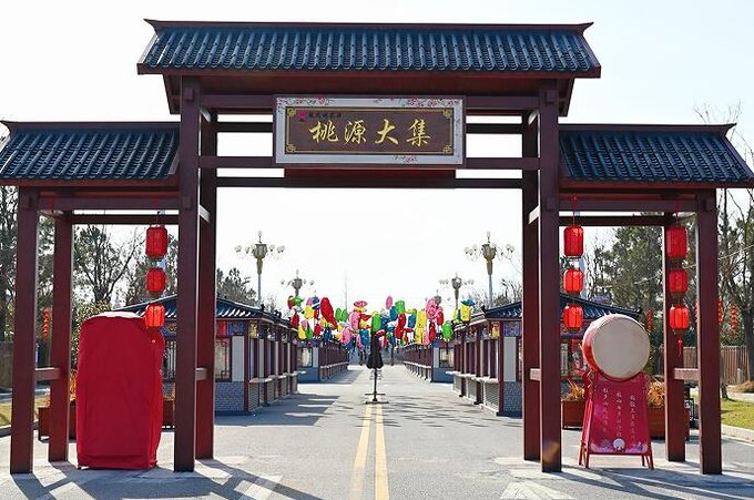 行程安排 第一天:逛桃源大集 早上抵达盐城,直奔龙冈桃花源。首先去桃源大集感受热闹的氛围。这里有大红灯笼、喜庆福字、琳琅满目的货品和高亢嘹亮的叫卖声,充满了“烟火气”,传统与现代,多元文化在此交相辉映。