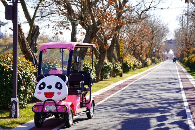 不得不多提一句,这里最令我满意的是可以租赁自行车、小熊猫电瓶车服务,可供游客环园骑车。桃花源占地太大,有了电动车代步,随走随停,不用担心老人腿脚,宝妈们也可以轻松遛娃逛园子。