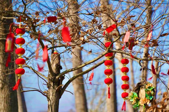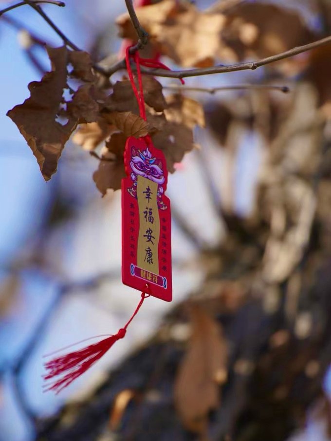 板栗大道 穿过桃花源牌坊,漫步在板栗大道上,两旁的树木上挂满了祈福牌和灯笼,红红火火的,年味十足,每一个祈福牌上都寄托着人们美好的愿望,我也不例外,写下了自己的心愿,轻轻挂在长廊上,祈求新的一年好运连连,满是期待和希望!