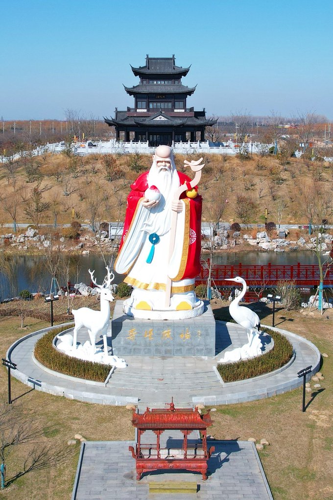 寿星广场 龙冈桃花源景区遍种桃树,桃花被寓意为长寿之神,桃子更是长寿之果。寿星广场上高约13米的老寿星,手捧仙桃,笑容可掬,老寿星两侧是寓意着健康、长寿、吉祥鹤和鹿。