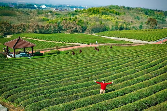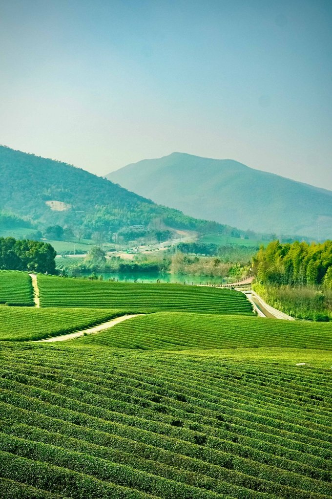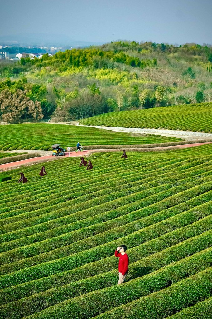 第二天一早前往第四站【龙池山自行车公园】,这是一个集自然美景与健身运动为一体的好去处。这里有着漫山的茶树、清澈的湖水、茂密的森林树木花草等,无论是骑行还是漫步,都能让你沉浸在大自然的怀抱中,感受到宁静和平和的氛围,这里就是宜兴龙池山自行车公园~ 茶园是宜兴一大特色,拍照很出片,最佳机位是站在高处俯拍大片茶园,很出片都是拍照的好地方,一定要记得留下美好的回忆哦。听说,还是《余生请多多指教》的拍摄取景地~你可以找到电视剧中的拍摄角度,尽情模仿剧中的镜头,感受一下当演员的感觉吧!! 在这里,你还可以租一辆自行车,和朋友在自行车道上骑行,沿途的美景令人陶醉,如同走进了一幅画卷。山间小径、湖旁林荫道,享受天然氧吧,茶园、竹海、水库,无一不让我沉浸其中,尽情享受骑行带来的快乐与自在。清晨和傍晚,是骑行的最佳时间,空气清新、微风和夕阳的余晖相伴,美得让人心醉神迷,而且这里是免门票的,宜兴龙池山自行车公园是一个让人心旷神怡的地方,无论你是来骑行、拍照还是放松心情,都能在这里找到自己的快乐。