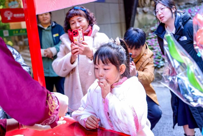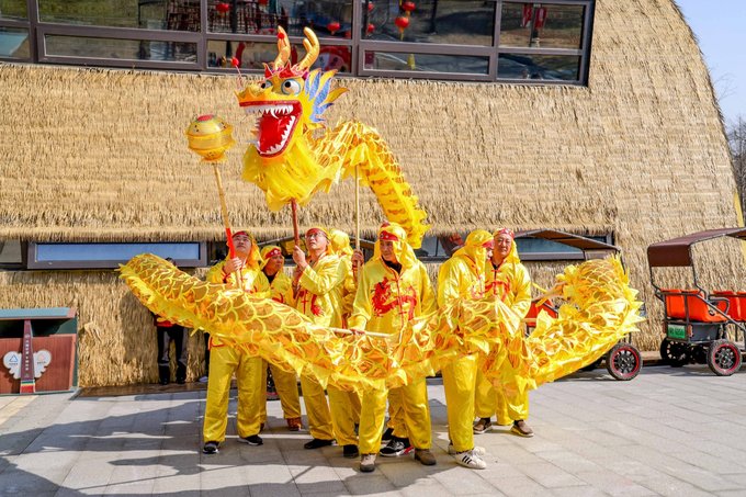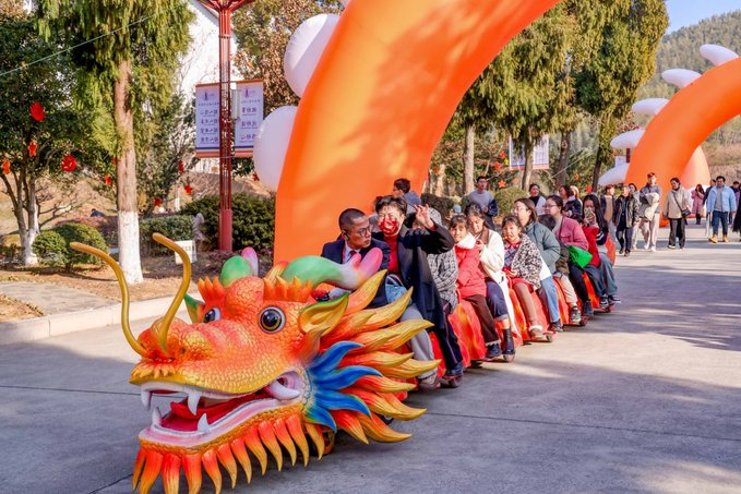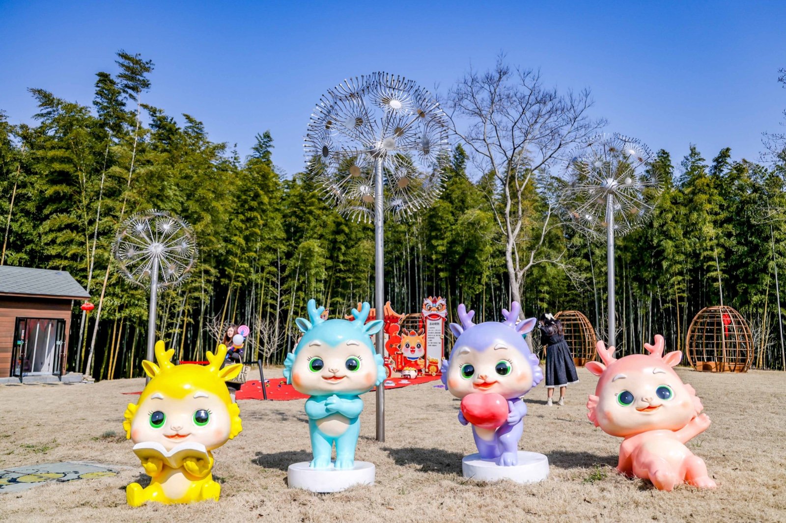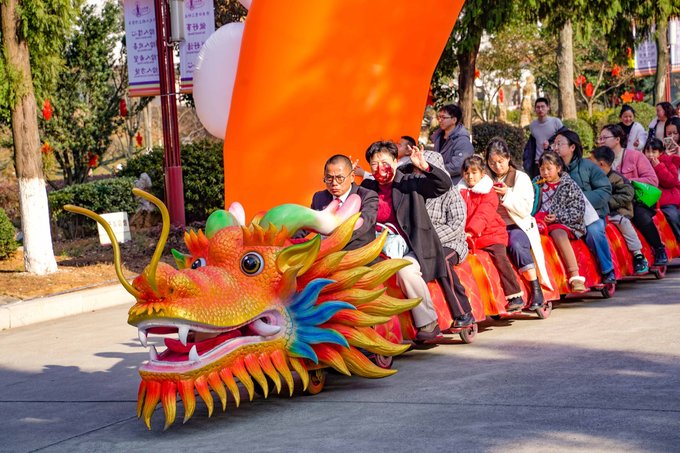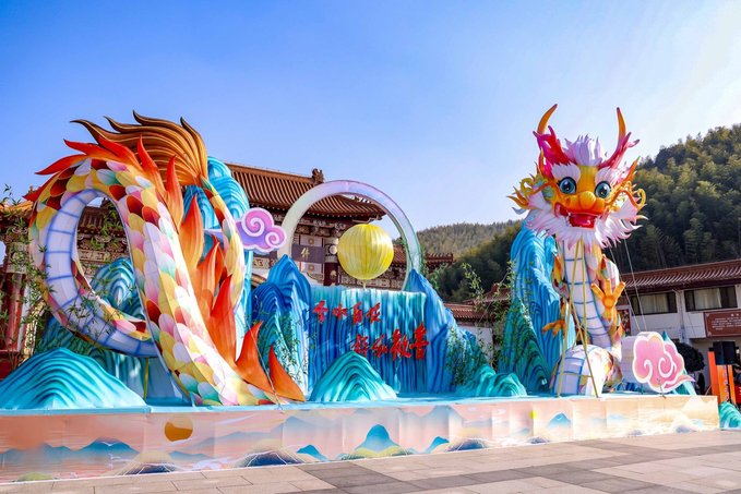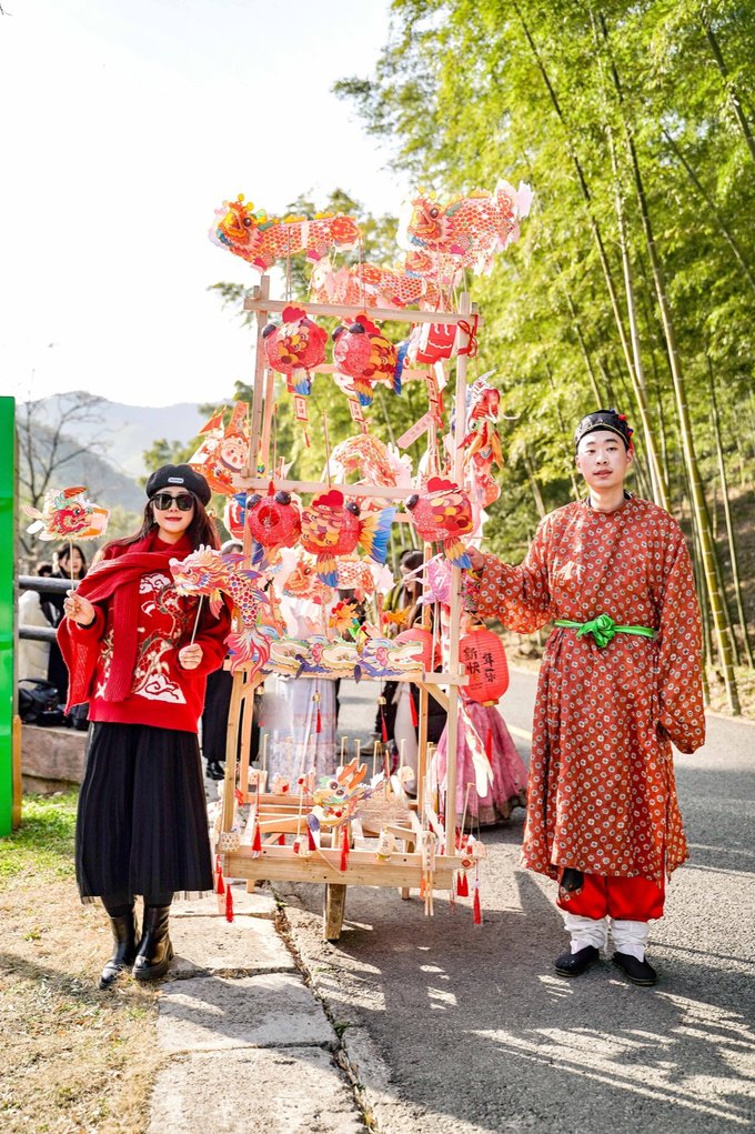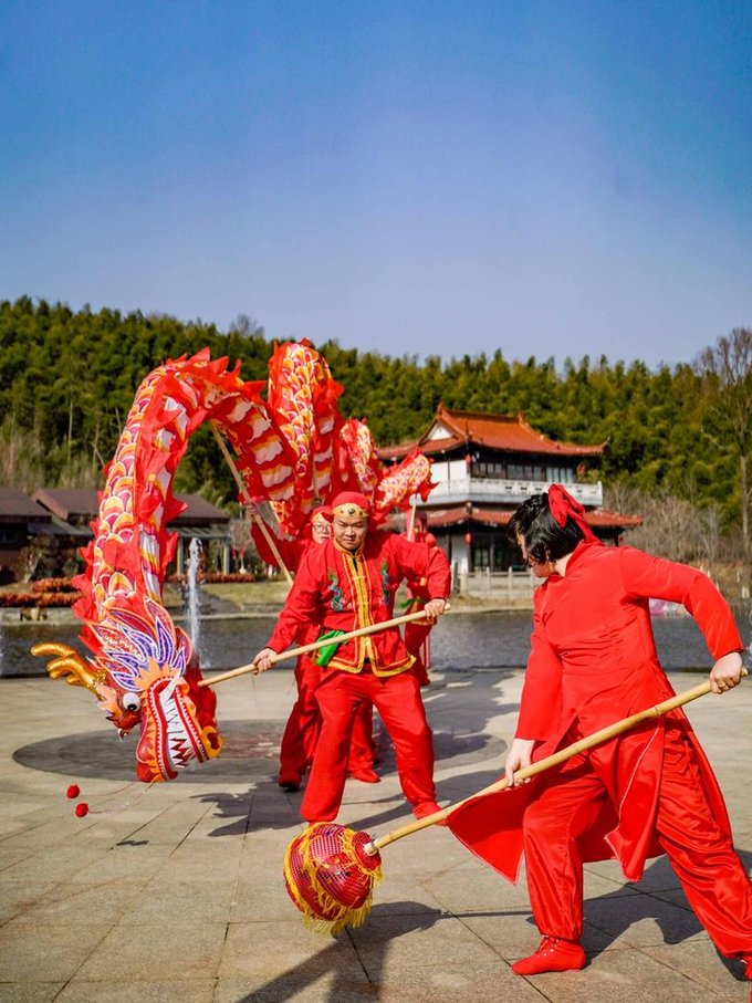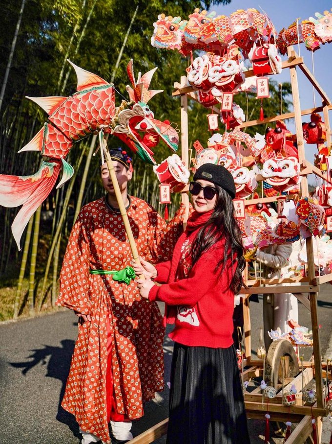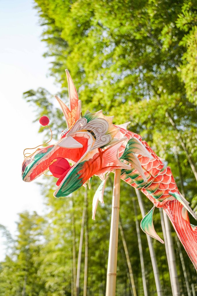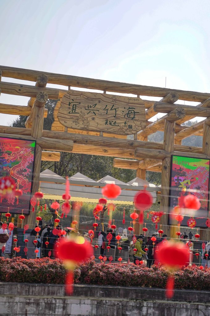 第二站前往宜兴竹海,这里是来宜兴不容错过的宝藏地。进入竹海,仿佛来到了另一个世界。茂密的竹林环绕,清新的空气扑面而来。宜兴竹海以其广阔的面积和众多的品种而闻名于世。从翠竹、青竹到黑竹,每一片竹林都散发着独特的韵味。漫步其中,竹林深处,青翠欲滴,空气中弥漫着清新的竹香,远离了城市的喧嚣和繁忙,仿佛进入了一个与世隔绝的世外桃源。连绵起伏的竹海,如同一道道绿色的屏障,守护着这片神奇的土地。在竹海里面的咖啡厅小憩,点一杯特调饮品,坐下来感受竹海的新鲜空气。 当然,除了欣赏竹子的美丽,还有其他许多精彩的活动等待着你。新春游园会,不仅可以看到非遗民俗,还能沉浸式的观看舞龙舞狮,古风演出,齐乐“龙龙”,欢欢喜喜过大年!当然,还可以打卡各种“龙”装置,让你拍照成功出圈! 还可以吹糖人,偶遇卖货郎,有非遗龙灯,还有很多特色小灯笼,很是热闹~在这里不仅领略了大自然的神奇魅力,还感受到了中国传统文化的博大精深。 在这里体验非遗民俗闹新春,年味特别浓,一起探寻传统韵味,感受年俗之美,红红火火过大年!