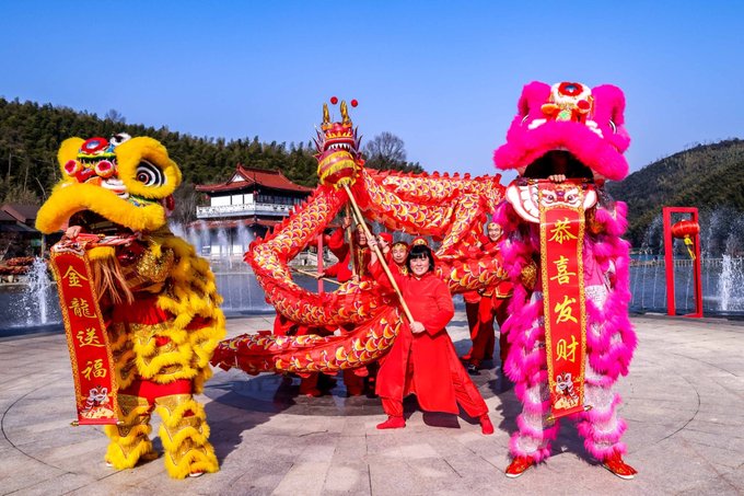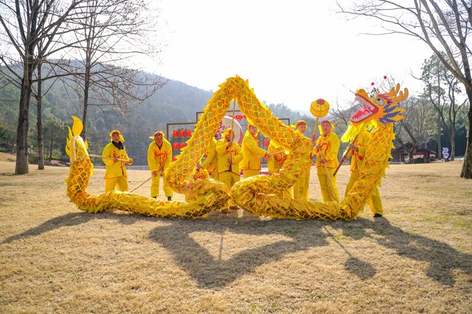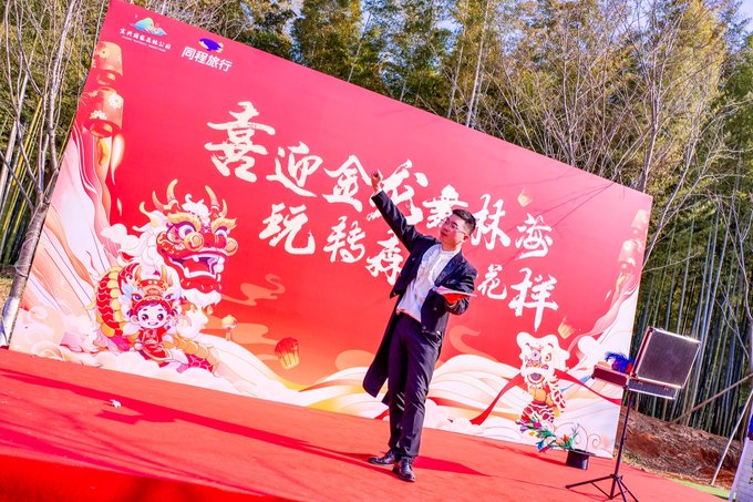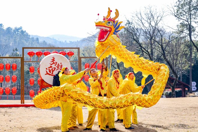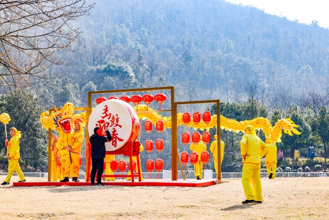 第一站前往宜兴国家森林公园,“喜迎金龙舞林海,玩转森林新花样”,这里不仅有清新的空气,还有丰富的主题活动。逃离喧嚣尘世,享受一份静谧与自然的美好。一走进森林公园,就感受到浓浓的年味儿。大红灯笼高高挂,金龙舞动,蛰龙仰首,在阳光大草坪击鼓迎春,表演热闹非凡。
