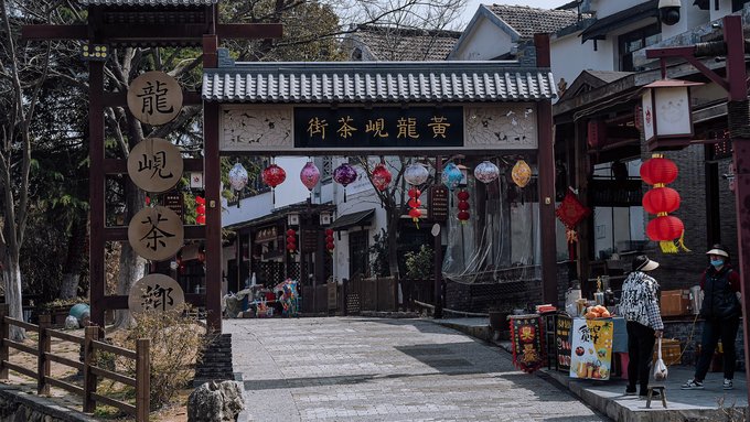 整个黄龙岘已经打造成了一个非常成熟的金陵茶文化旅游村,从茶山上下来,可以去黄龙岘茶街逛一逛。白墙黛瓦,青石板路,整齐划一的房屋错落有致,小街不长,却有各种当地特色的美食小吃、农家菜餐厅,清幽雅致中又满满的人间烟火气。