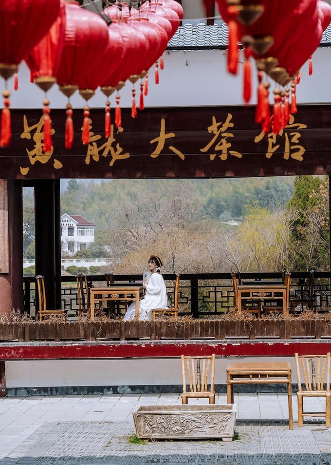 茶街上还有一个黄龙大茶馆,古香古色的大茶馆,室外的茶座收获360度无敌好风光,可以品一杯当地特色的黄龙岘清茶,也可品味刚刚在炒茶坊自己烘焙的新茶,听着悠扬曼妙的古筝琴声,体验返璞归真、回归自然的慢节奏度假。