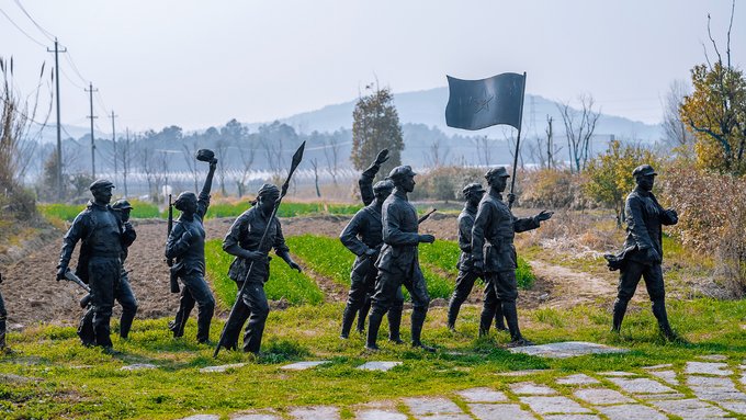 下午四点多的光影很好看,就在这里,静静的感怀先烈吧,接受红色教育,感受那一抹最鲜艳的中国红🇨🇳! 游玩tips: 📍地址:南京溧水白马镇石头寨 🚗交通:建议自驾,导航“红色李巷”即可,游客中心附近有免费的停车场 🎫门票:个人参观免费🆓,团体参观讲解500元/人/天,包含参观讲解,红色培训课程和住宿 ✍️建议游玩时长:半天