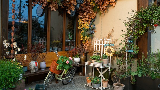 当然,偶尔也有这清新扑鼻的鲜花咖啡厅,又把我们拉回文艺小资的现代时光,总之,在这里,每一秒,每一个角落,都是美好。