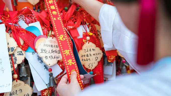 悬挂祈福牌,是城隍庙独有的仪式感。