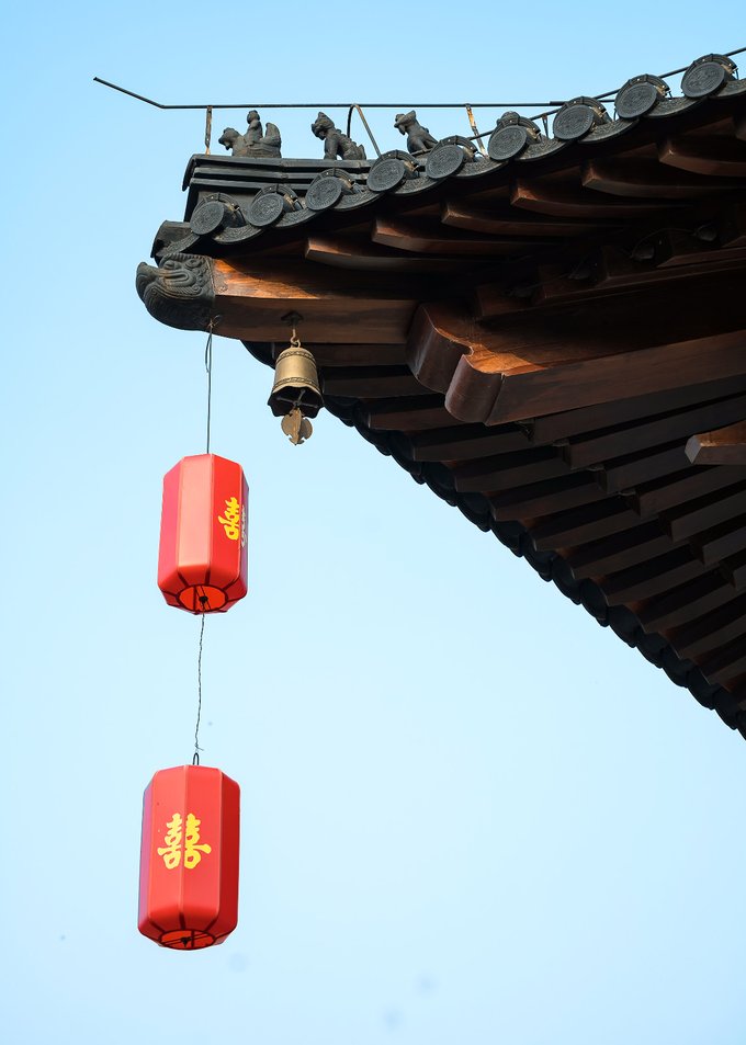 而这座迎恩阁被打造成花嫁喜事之所,大红的喜字,古雅的风韵,古人的婚典,也从这里,可以窥见一斑。