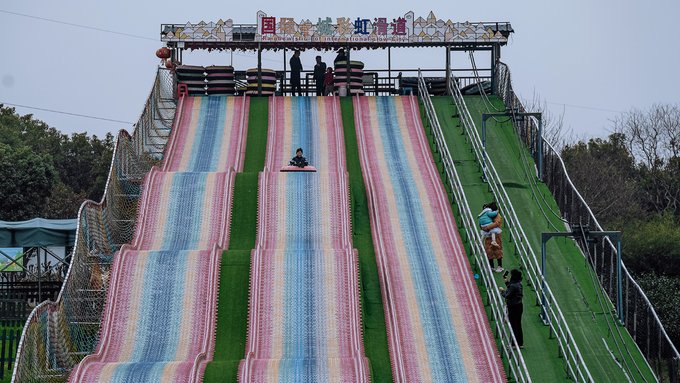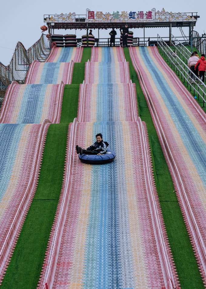彩虹🌈滑道也是慢城里很受欢迎的游玩项目哦,大人小孩都适配,全家共享快乐。