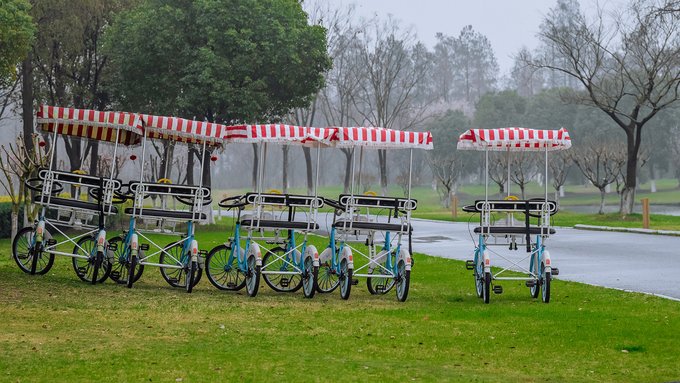 整个水慢城很大,分为了好几个区域,建议一定要选个交通工具游览,可以租自行车,也可以选择坐电瓶车游览,每个园区都有站点,15分钟一趟,方便又不累。