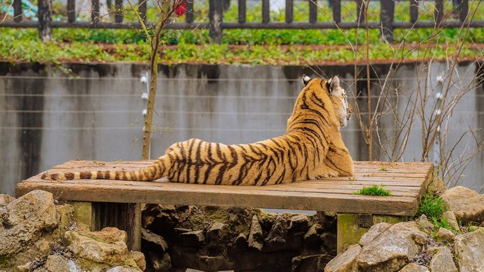 猛兽区里狮子老虎都给面子的出来溜达,都被我们看到啦~