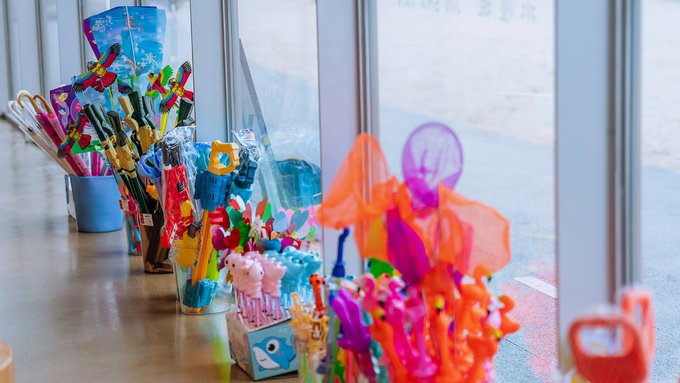 第一站可以去金沙滩,这里有一个人造的小沙滩,椰树沙滩,还有一小片粉色的沙滩,小朋友都超喜欢,周边还有一个小商店,各种挖沙工具都有,没准备的也不怕没得玩。
