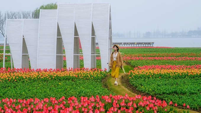 第二站一定要去滨湖花海,四季都有不同的花花,这个季节郁金香开的正好,大片花海超美。