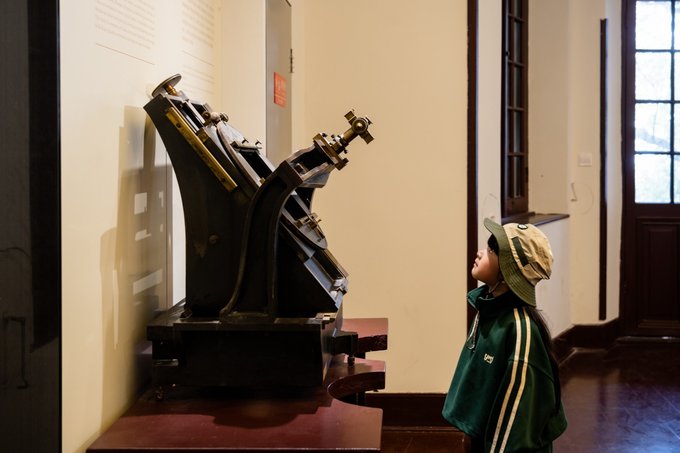 参观完教堂,沿着步行道下山,就可以去山脚的地震博物馆打个卡,也是免费开放的。这是一个相对比较冷门的场所,但来头却不小。博物馆在拥有140余年历史的佘山地震基准台内,是一座馆台结合、集科普馆与博物馆于一体的场馆。场馆内保存国内外最多最老的历史地震仪器和历史地磁、地震资料。