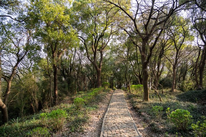 这里是上海唯一的自然山林胜地,占地401公顷。园内十二座山峰从西南趋向东北,蜿蜒连绵13公里,使一马平川的上海平原呈现出灵秀多姿的山林景观。 佘山分东佘山和西佘山,都不收门票。这次我们从西佘山开始上山,一路沿着步道走上山。走的快,半小时左右就能登顶,一路上绿化覆盖率很高,非常适合春日徒步吸氧。两边的绿茵围绕仿佛进入绿野仙踪,静谧,疗愈。