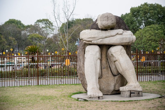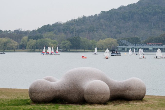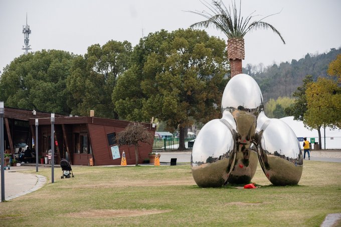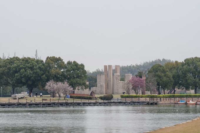 不亚于西湖的上海公园就是月湖雕塑公园,这是上海最大的人工湖,也是将雕塑与自然结合在一起的公园。以“生命之源”为主题,在广阔的水面上创作了许多具有深远意义的雕塑。绕湖一圈2-3公里,分春夏秋冬四个区域。 整个公园是艺术与自然的结合,尤其是在春天这个季节,边走边看边逛,身心得到巨大满足。网红巨石林,仿佛穿越来到英国的巨石阵,两者有异曲同工之妙。 公园还有一个有意思的地方,这是一个宠物友好公园,狗狗都需要牵绳。你会在这看到,溜娃和遛狗的,各自有各自的势力范围,看来熊孩子和毛孩子都需要大自然来释放精力。