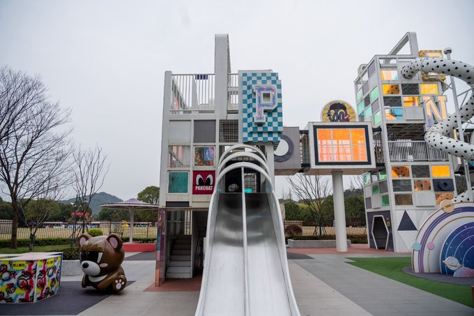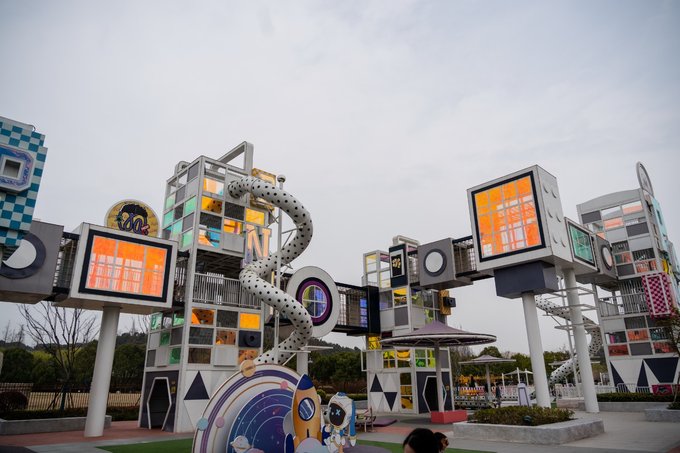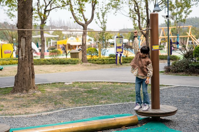 乐园就在月湖雕塑公园边上,地方大、项目多,100多种游乐项目快乐畅玩,🉑玩一整天。巨型滑梯🌈充气蹦床🛝大大小小沙池🎡旋转木马🎢各类秋千都有,游乐设施还是挺丰富的。