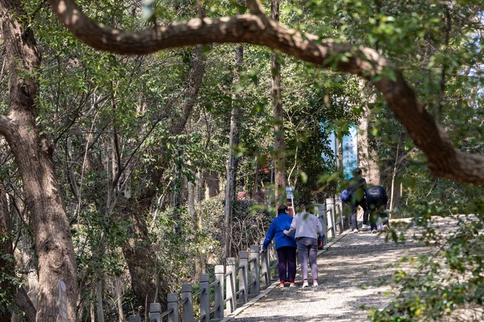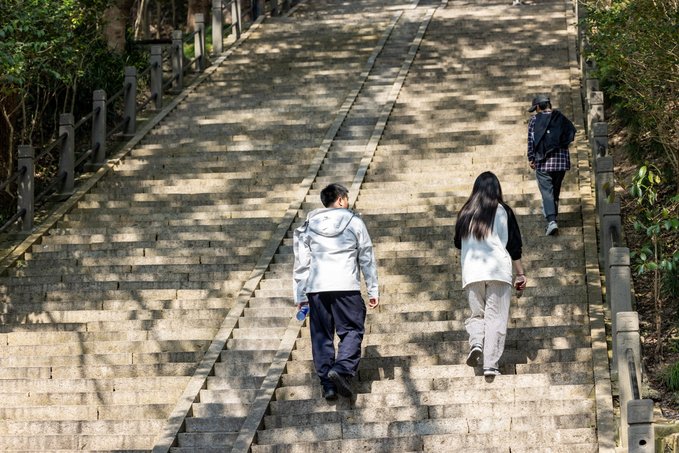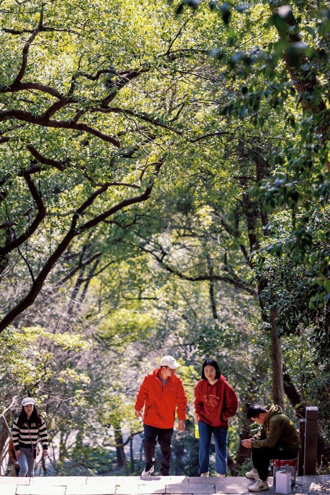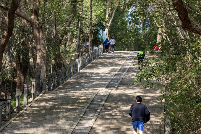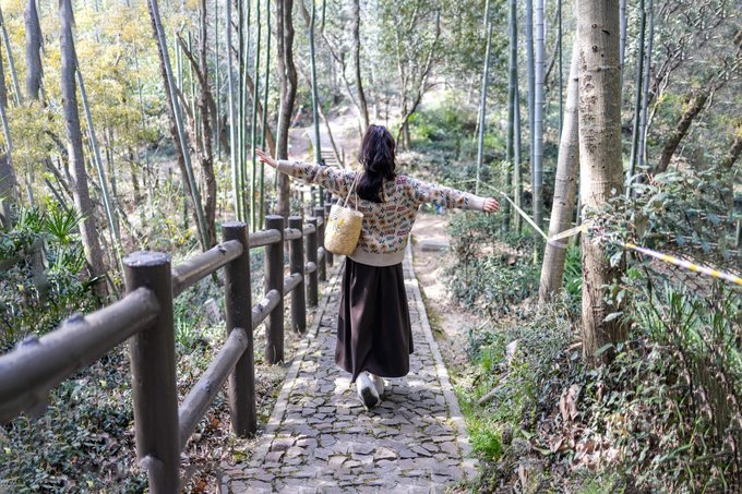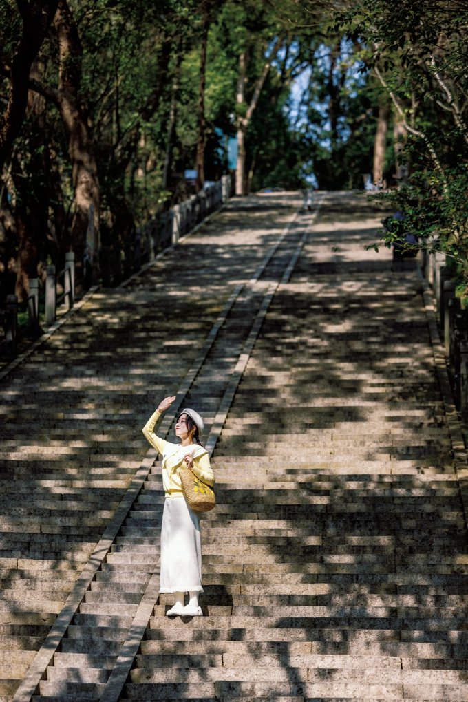 上海佘山国家森林公园分为东、西两个部分,东佘山长长的台阶通道非常美,两旁树木高大枝繁叶茂,这里连着乾隆古道,路口有千年老榕树和盛开的山茶花,东佘山间竹笋因富有兰花幽香而闻名,竹林森森,从山脚走到山顶满眼皆是绿意。空气清新无比,站在高处吹着山风,爱美好的春天。