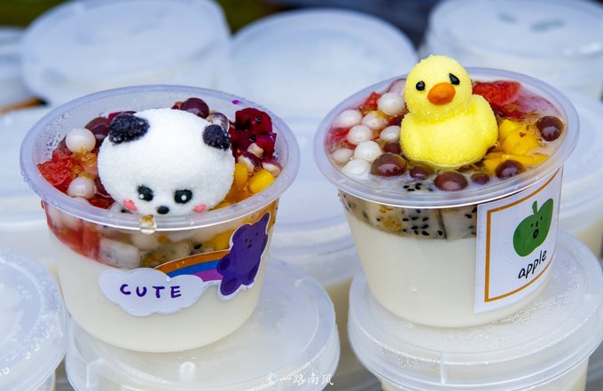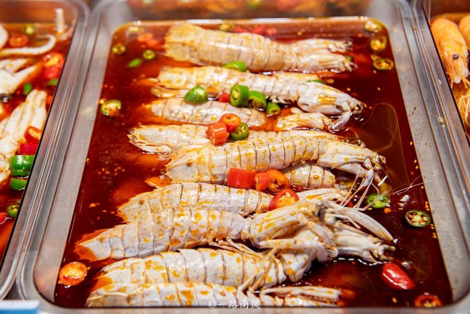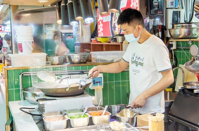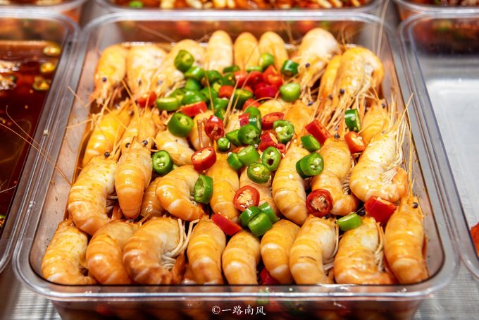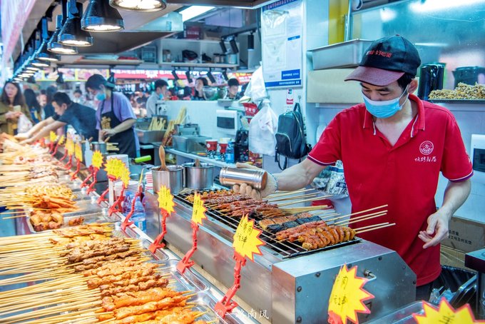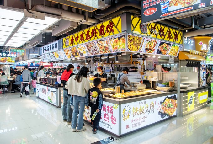 场内的美食五花八门,全国各地的风味都有,我们甚至看到了西餐。 很多摊档前面围满了人,想品尝一碗虾滑粉丝要等待20分钟以上,但大家都很有耐心。这里的美食价格都很美丽,主打一个接地气。