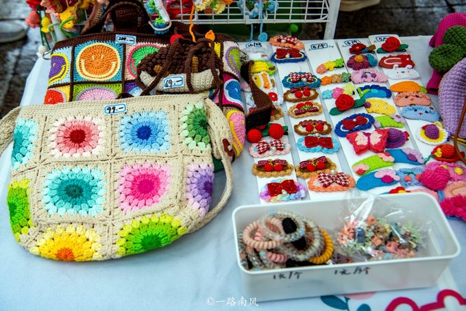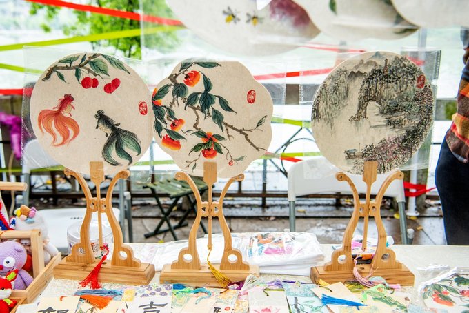主题市集有咖啡,有果饮,有各类小吃,还有各种各样的精品和手工艺品,好多纺织物和折扇都是摊位主人用心创作出来了,要颜值有颜值,要细节有细节,果然高手在民间,太了不起了。