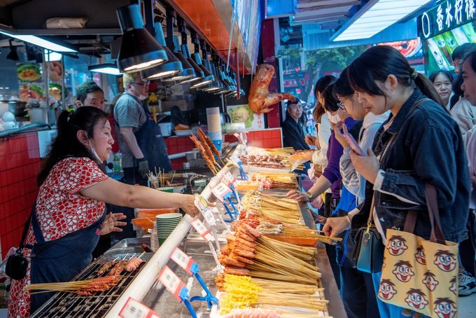 走进好吃街,发现现场人山人海,真的被这场面震撼到了。街区内南腔北调,很多游客都是慕名而来。