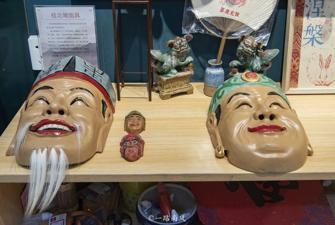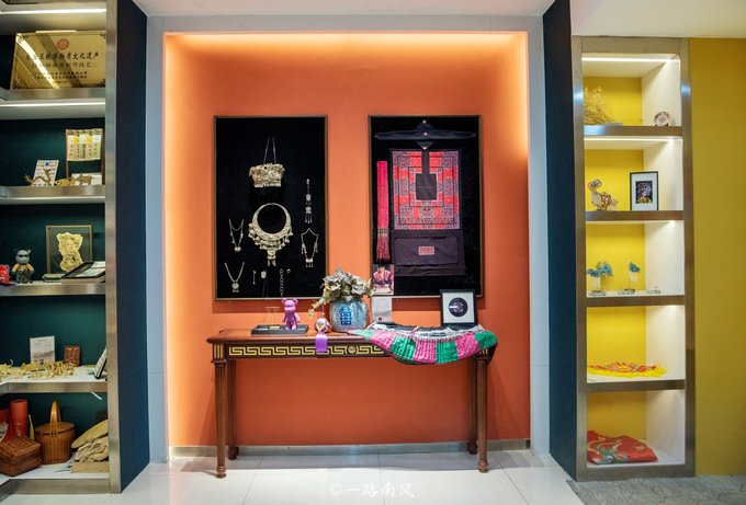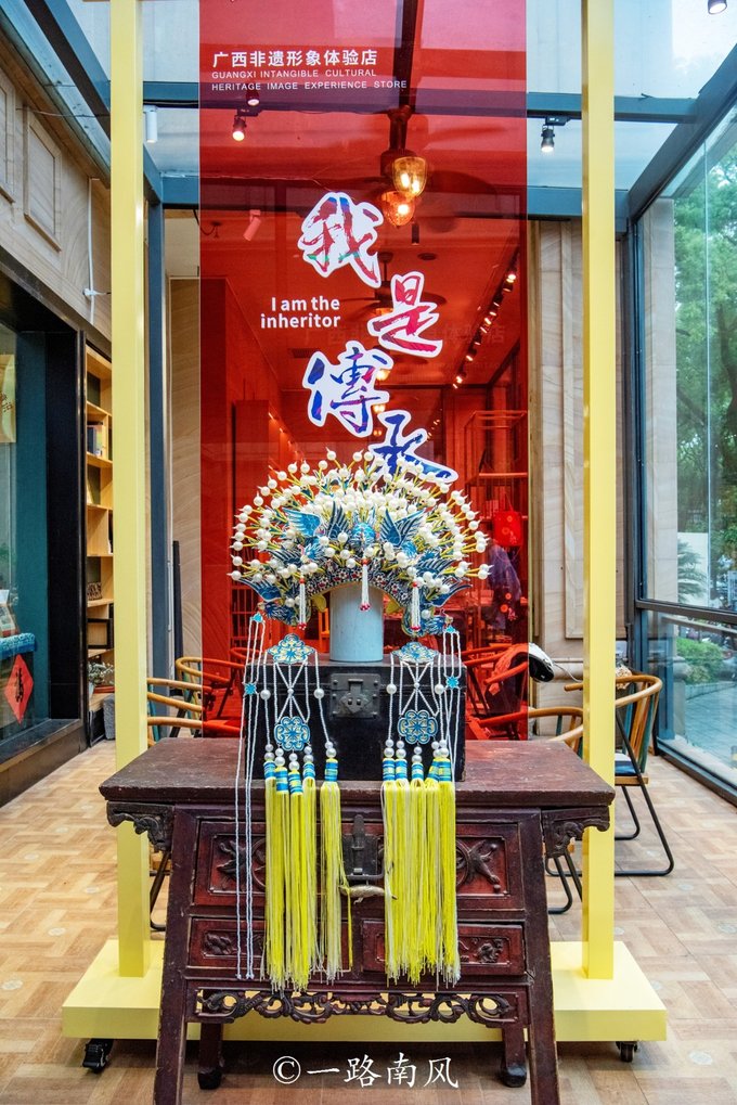 穿过马路,来到桂林滨江路15号,惊喜地发现这里有个广西非遗形象体验店,说是店,其实也是非遗陈列馆,每一件作品都极为精细、讲究,都有属于自己的故事。