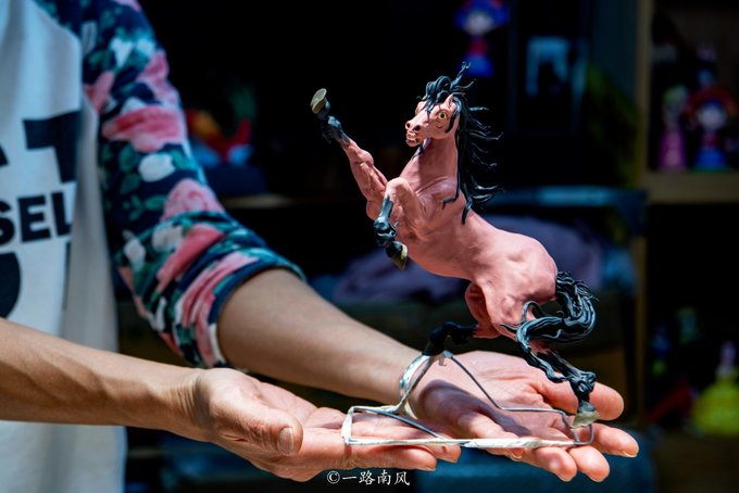面塑的原料是面粉或经过复杂程序配置的复合软陶质材料,一件完整的作品经过不下十道工序,在捏制的过程中采用了揉、捏、压、搓、滚、碾、拨、切等技术,最后的完成品色彩艳丽,形态副真,既可以威风凛凛,又可能浪漫、可爱,还能因应时代的发展进行创新。有了技术的加持,面塑作品的保存年限越来越长,有的长达数十年,甚至上百年。