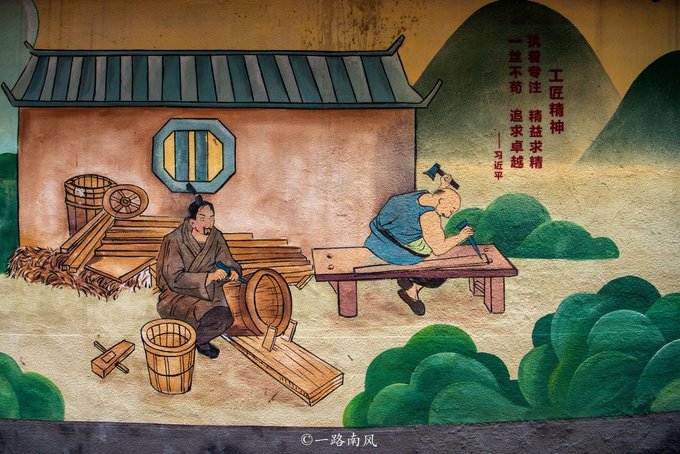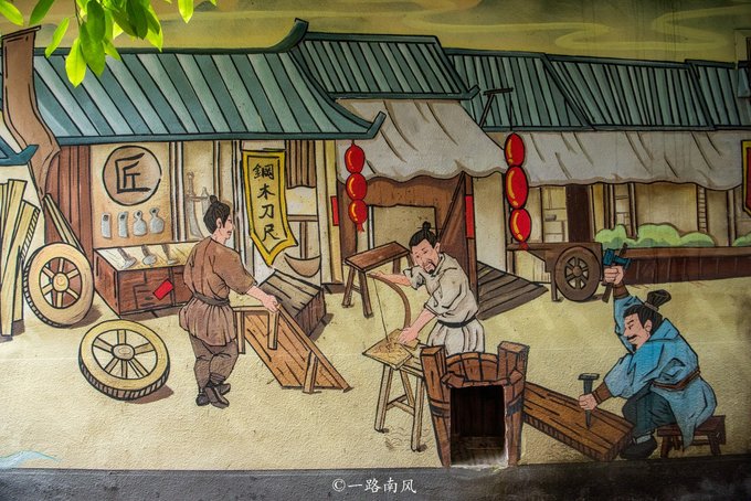 随着时代的发展,棠梓西巷已经不是木工的工作区,周边也变成各种居民楼,但通过墙上的彩绘,依然能感受到过去的氛围。