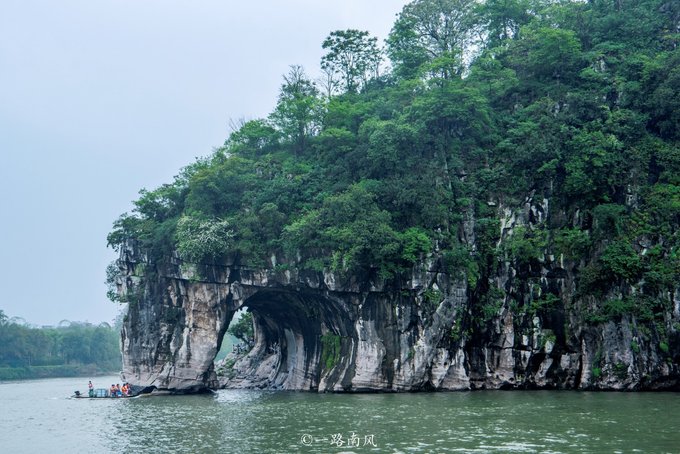 杉湖对面便是风景如画的象山景区。景区内的象鼻山是桂林旅游的璀璨明珠,其形态宛若一头大象在畅饮漓江水,令人叹为观止。而更为神奇的是,在这头大象的鼻子与大腿之间,竟然天然形成了一个面积约150平米的圆洞。每当江水穿洞而过,便形成了一幅如诗如画的景象,仿佛明月映照在波光粼粼的水面之上,美不胜收。