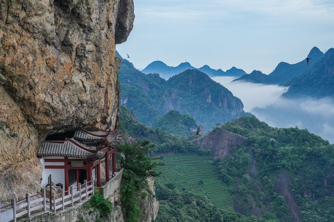 建在悬崖峭壁上的建筑,远远望去,感觉建筑和山体融为一体,同时又惊叹这是如何建造出来的。