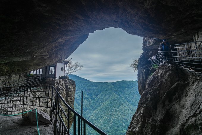 【雁荡山之方洞胜景】 方洞是游客到雁荡山旅行必打卡的一站。沿着险峻非常的方洞栈道慢走,用一步一景来形容丝毫不为过。关刀洞、云天桥、倒挂金钟、梅花洞、聚仙阁等等,大自然的鬼斧神工让人啧啧称奇。