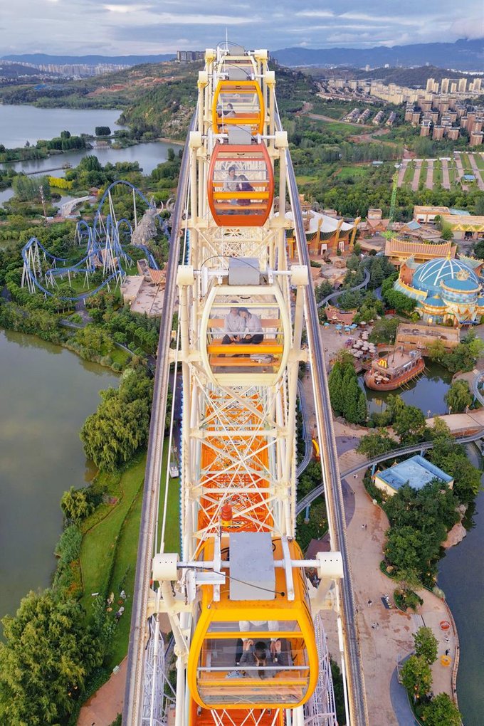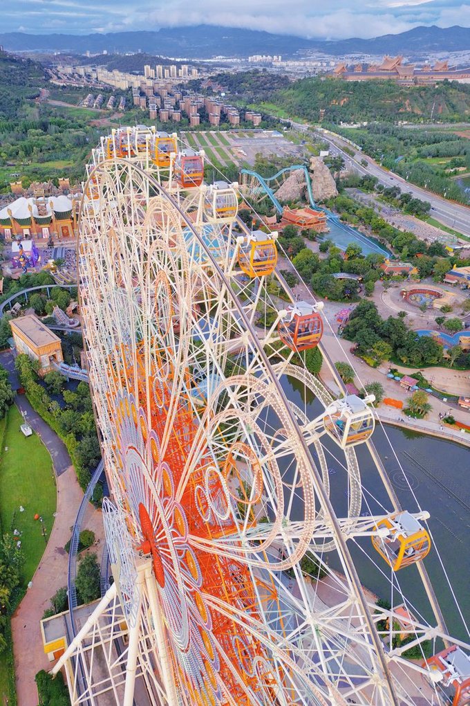 七彩云南欢乐世界拥有七大主题分区✨ 分为:1️⃣滇军营地、2️⃣幻滇奇域、3️⃣童梦世界、4️⃣万象部落、5️⃣霜月寒洲、6️⃣洪荒秘境、7️⃣四季花海,每个区域都有各自特色。 ✨滇池之眼摩天轮是必体验的项目,108米高的摩天轮,提供了俯瞰滇池和园区全景的绝佳视角。