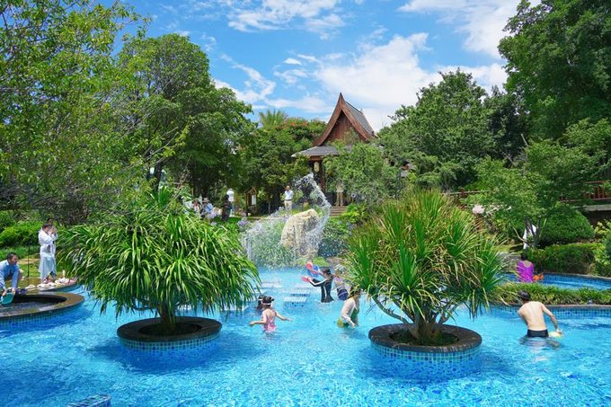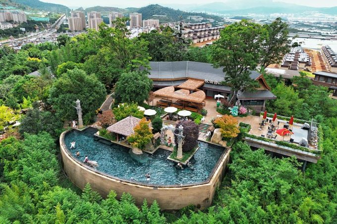 在游玩过七彩云南欢乐世界之后,还可以去到「七彩云南古滇温泉山庄」,在这里揽滇沐霞、观滇赏云、感受山林温泉,置身于山野之中,去感受大自然的呼吸,与岁月为友,与山水为伴。可以卸下旅途疲惫,静静享受这悠然的日子,居山野繁花里,满足内心的安逸。