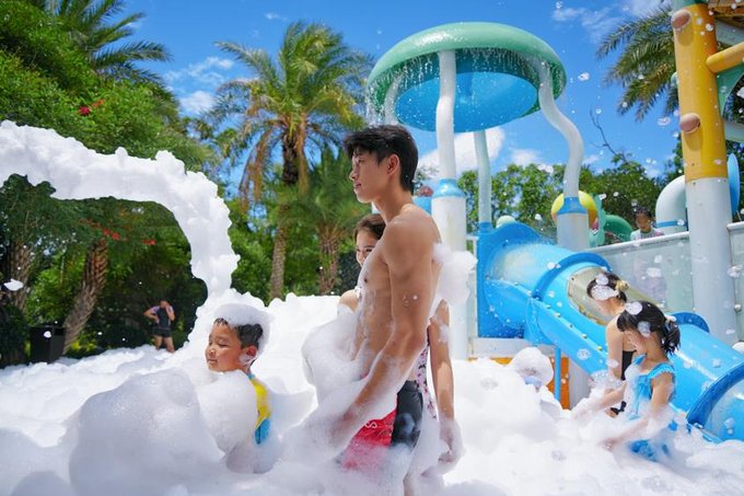 正值暑期,这里也给前来的宾客准备了众多活动,有泼水大作战、泡泡大作战、云端音乐会等,让大人小孩都能清凉一夏,在泡温泉的同时也能感受夏天带来的快乐。